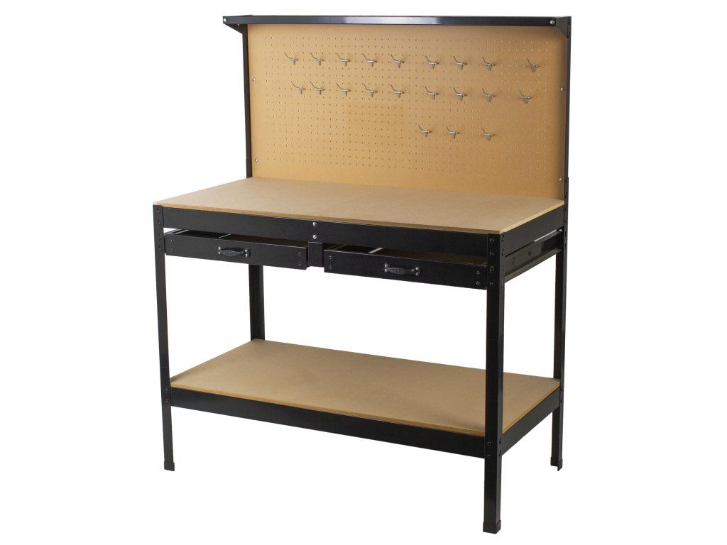 Pracovní stůl ECONOMY s děrovanou deskou, dvěma šuplíky a odkládacím prostorem - WT1002A