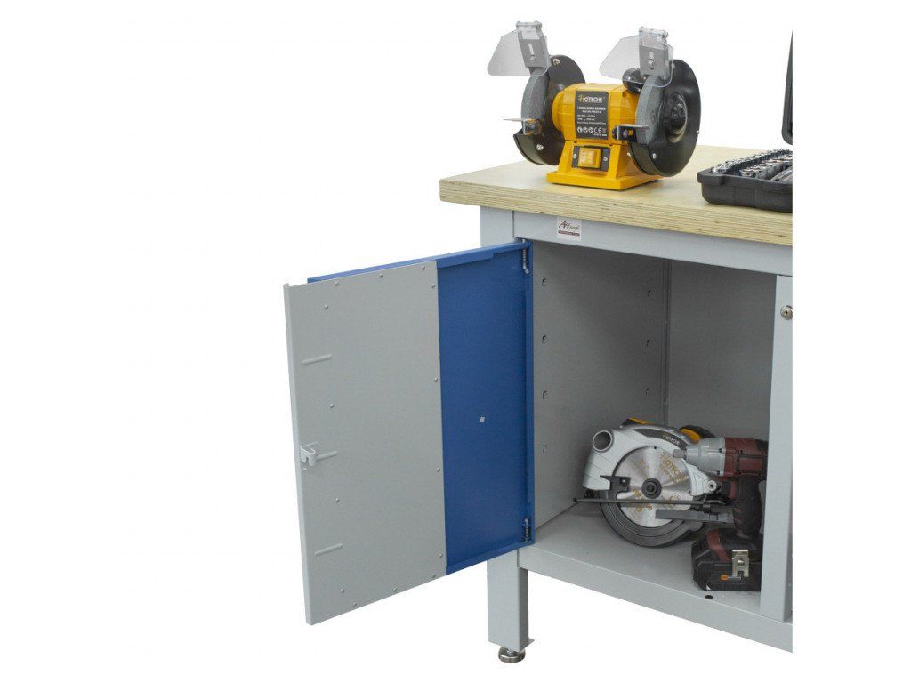 Profesionální kovový ponk určený pro náročné domácí i dílenské použití. Nosnost pracovní desky je 300 kg, takže spolehlivě unese i těžké stroje a velké sady nářadí.