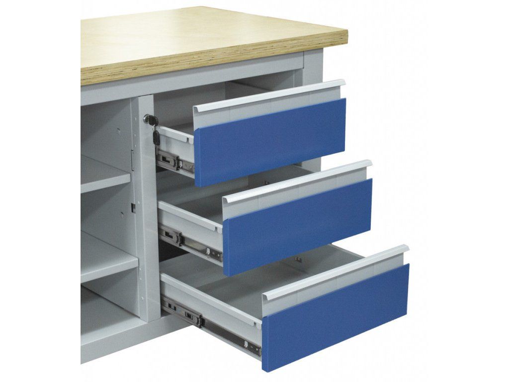 Kovový ponk se skříňkou a 3 zásuvkami