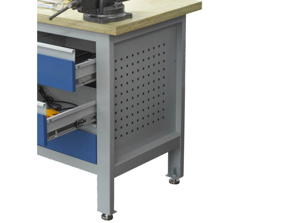 Na obou bocích je pracovní stůl vybaven děrovanou deskou. Díky tomu máte často používané nářadí stále po ruce a přehledně uspořádané.