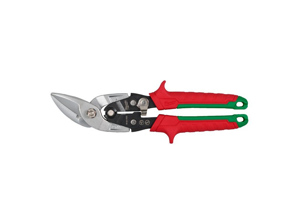 - Ofsetové nůžky: pro dlouhé souvislé rovné nebo zakřivené řezy. Díky posunu 45° zůstává ruka uživatele mimo stříhaný materiál.