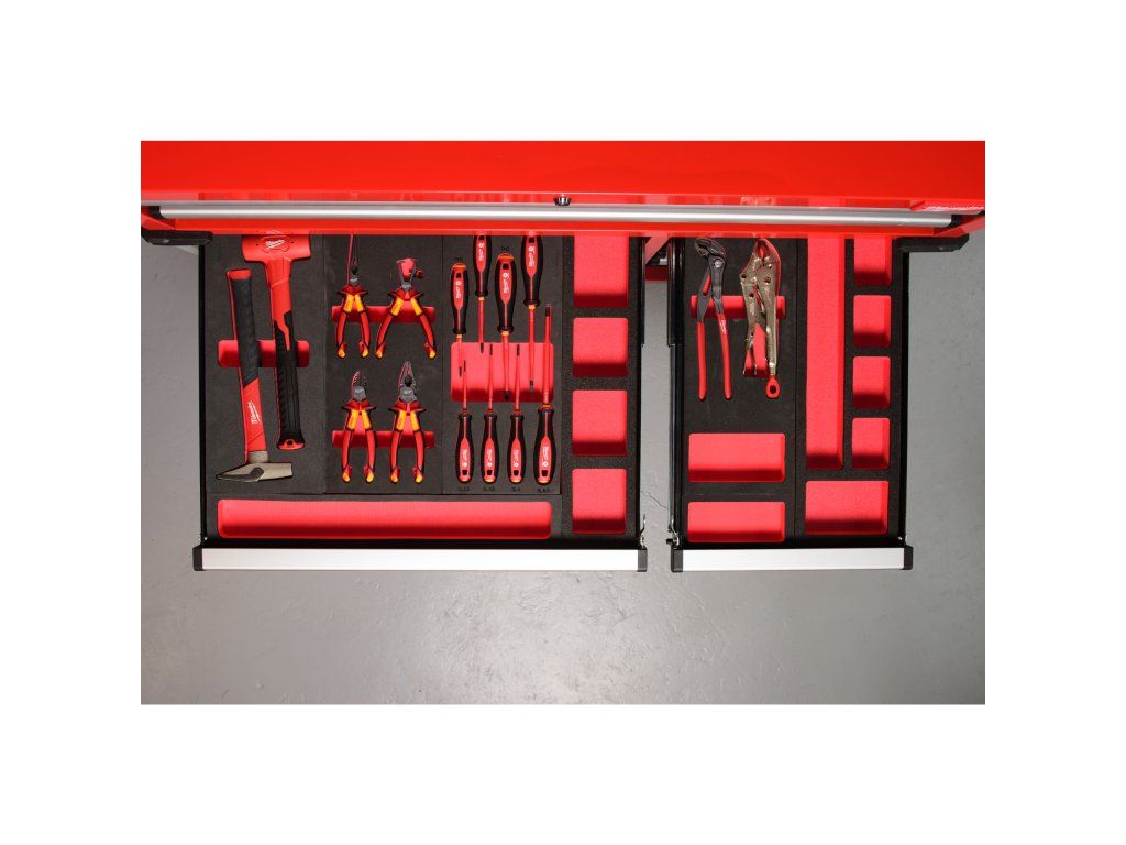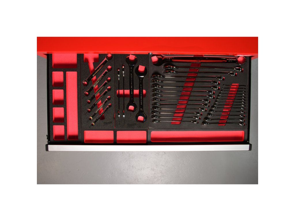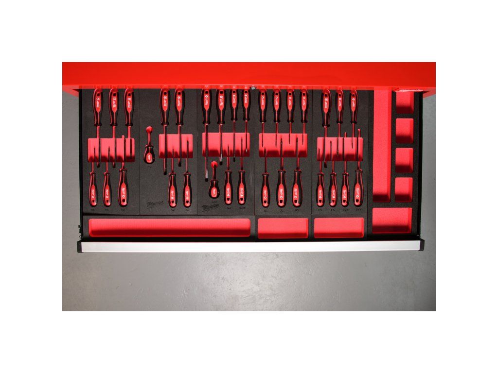 - Laserem řezaná pěna pro maximální využití prostoru v 46″/ 117 cm ocelovém skladovacím systému.