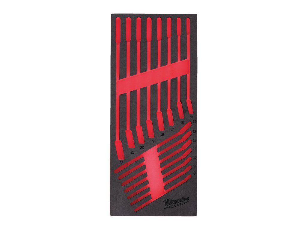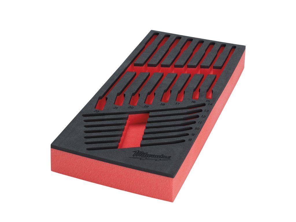- Odolné pěnové vložky pro úhledné uložení nářadí Milwaukee do ocelových vozíků.