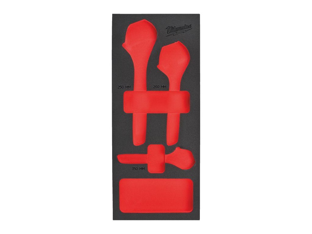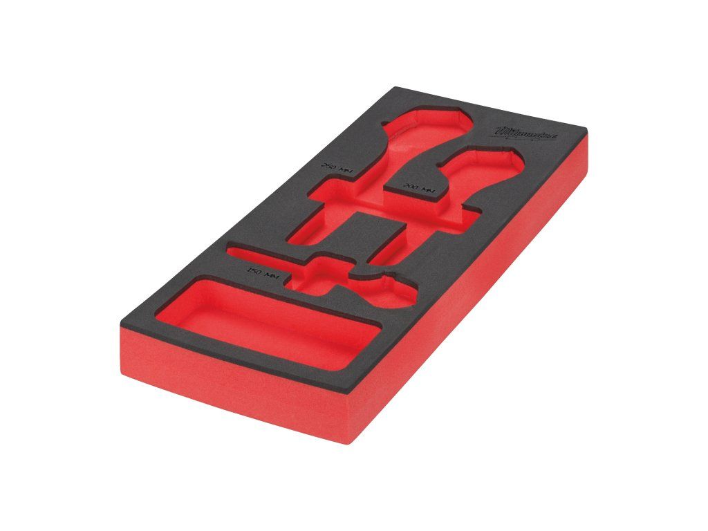 - Odolné pěnové vložky pro úhledné uložení nářadí Milwaukee do ocelových vozíků.
