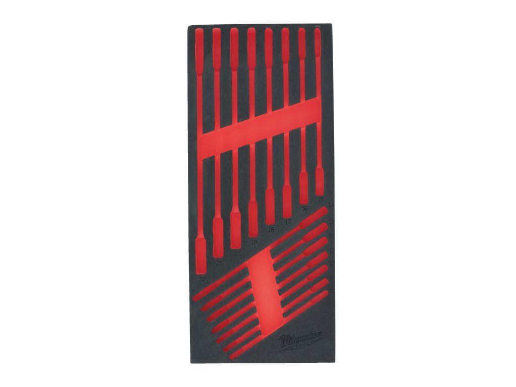 - Odolné pěnové vložky pro úhledné uložení nářadí Milwaukee do ocelových vozíků.