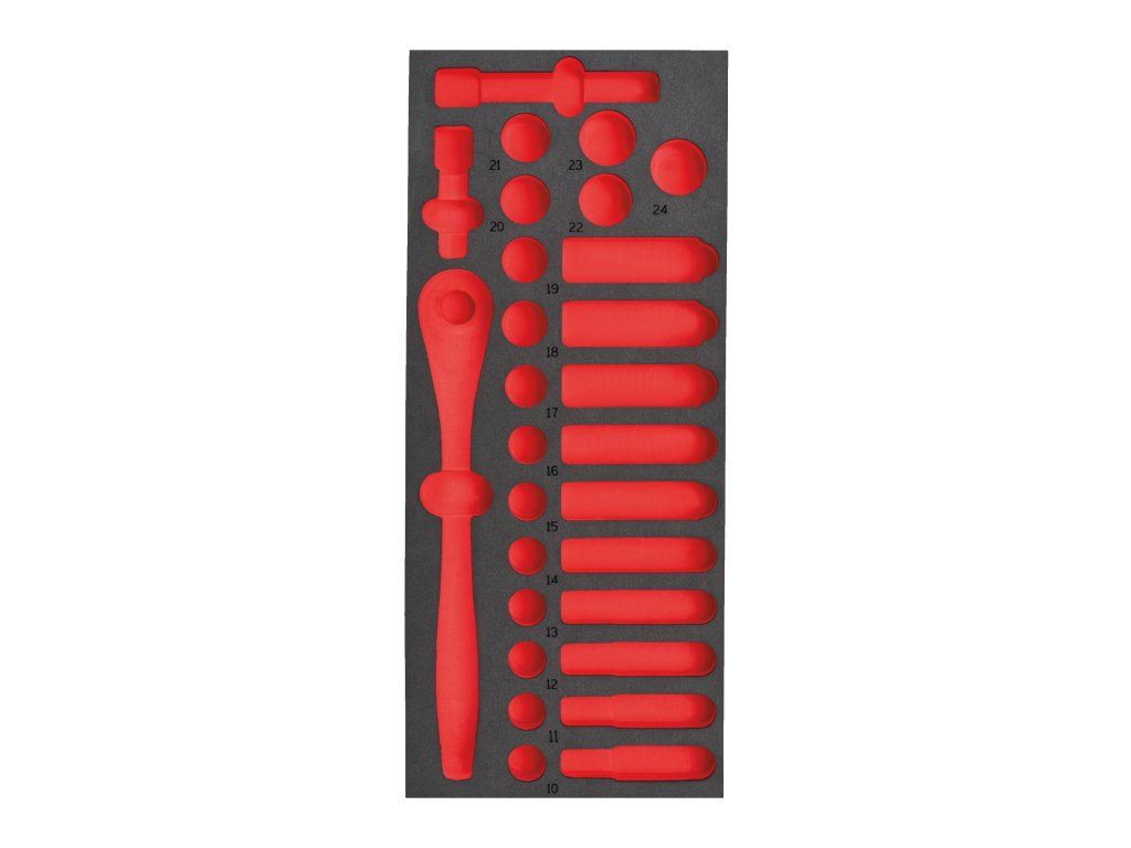 Prázdná pěnová vložka pro sadu ráčny a hlavic 1/2″ 28 ks