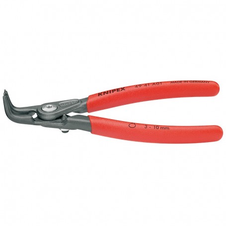 49 41 A01 Precizní kleště na pojistné kroužky pro vnější kroužky (hřídele) K montáži pojistných kroužků na hřídelích od O 3 - 140 mm Vysoce zatížitelné při trvalém používání, až 10krát vyšší životnost Precizní šroubovaný kloub s lehkým chodem Kováno Velké opěrné plochy na hrotech: žádné překroucení kroužků, snadná montáž tíhlá hlava kleští pro optimální přístup k součásti V kloubu je umístěné otevírací pružina, chráněná a neztratitelná Rukojeti potažené plastem který brání sklouznutí ruky Těleso kleští: chromvanadová elektroocel, kovaná, kalená v oleji použité hroty: pružinový ocelový drát, tažený Tvar:DIN 5254 B; svorky s úhlem 90° Model: S přídavným omezením rozevření (oblast rozevření plynule nastavitelná) Zábrana proti rozehnutí malých pojistných kroužků pro hřídele Hlava: Fosfátováno atramentolem na šedo Rukojeti: Potaženy plastem který brání sklouzávání Tvar: 4 Kapacita pro průměr hřídele: 3 - 10 O mm O hrotů asi: 0,9 mm Délka: 130 mm Hmotnost: 102 g Podrobnější informace ke zboží naleznete v katalogu KNIPEX v sekci "Katalogy"
