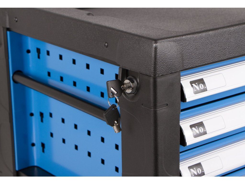 Pro zamezení přístupu nepovolaným osobám k nářadí využijete zámek na boční straně skříňky k uzamknutí všech 4 zásuvek naráz.