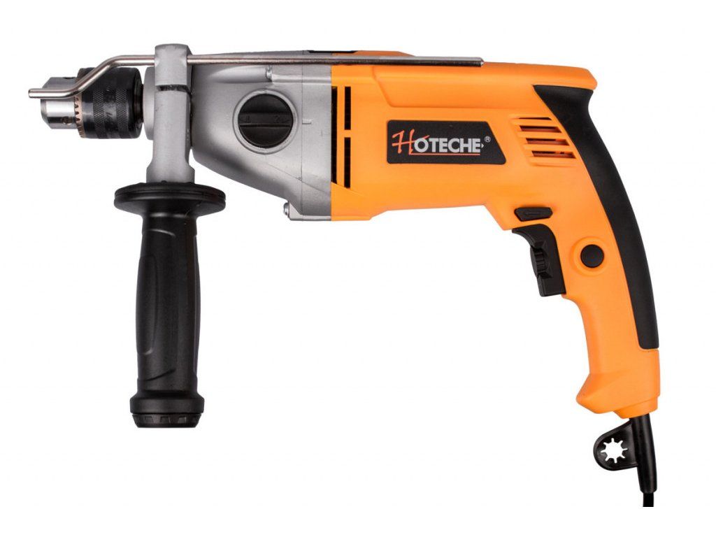 Příklepová vrtačka značky Hoteche s příkonem 1050 W vyvine až 3200 ot./min. a 4800 úderů/min. na prázdno. Vysoký výkon vrtačky si zvládne poradit s běžnými materiály jako je dřevo, kov, plast, atpd., s funkcí příklepu si snadno poradí i s vrtáním do zdiva a stavebních materiálů. Vrtačka zvládne max. ø vrtu 25/40 mm do dřeva, 13/20 mm do betonu a 8/13 mm do oceli.