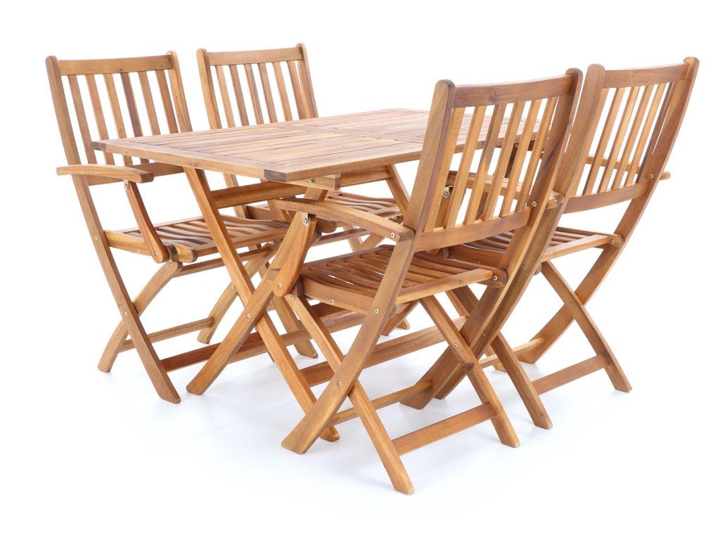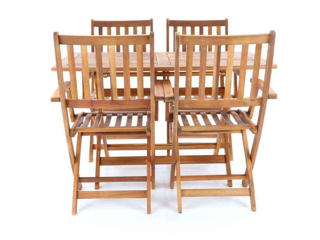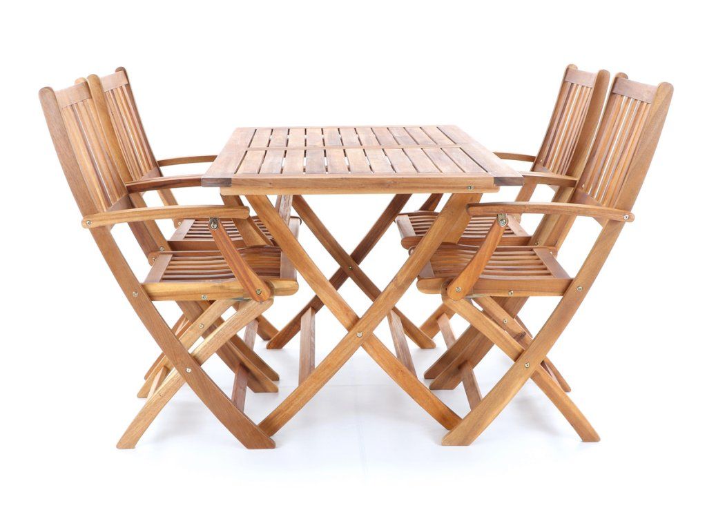 Dřevěná skládací sestava PRINCE VeGA 4 se skládá ze 4 skládacích křesel a obdelníkového stolu z exotického, velice trvanlivého a tvrdého dřeva Akácie . Není vhodné pro používání ve vlhkém prostředí bez použití vhodné impregnace.
