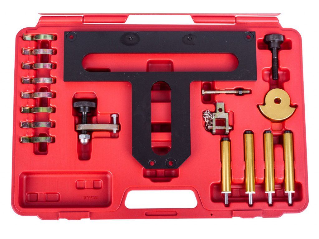 - Sada obsahuje přípravky pro aretaci motoru např. při montáži a demontáži vačkové hřídele.