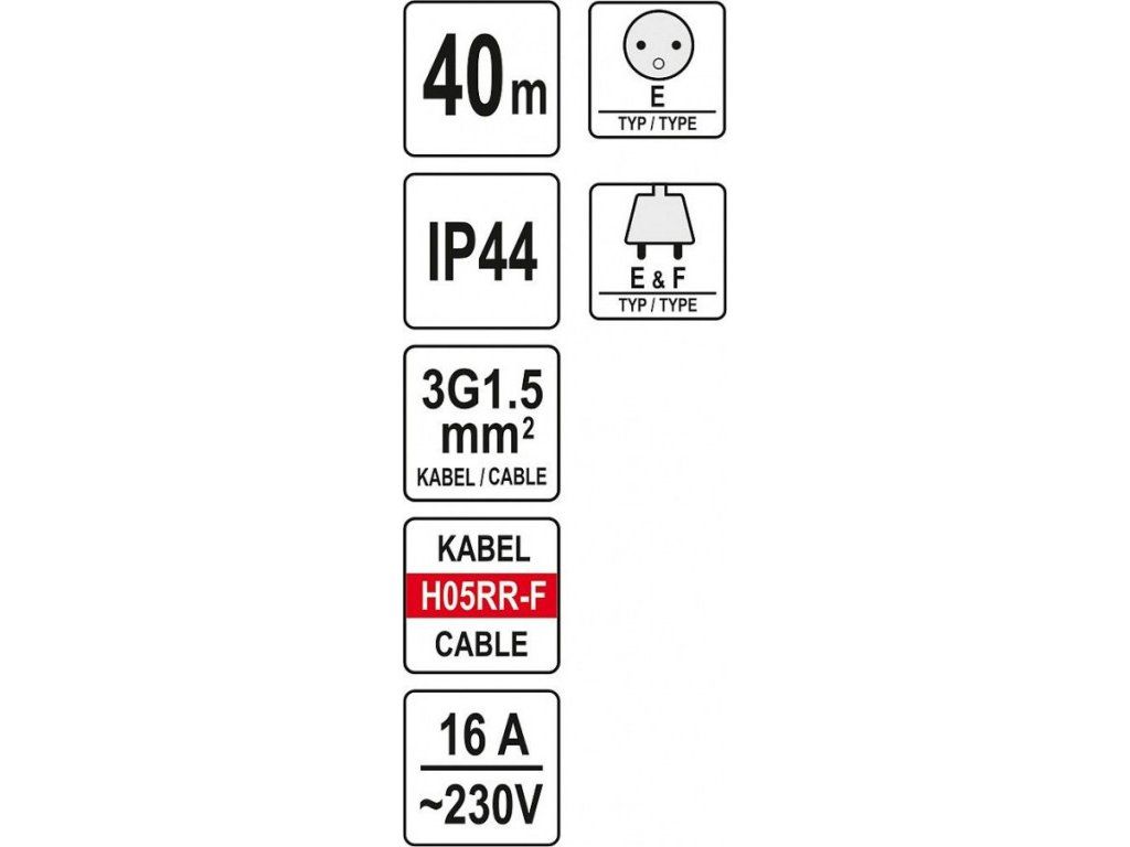 Prodlužovací kabel 40 m, buben 4 zásuvky - YT-81054