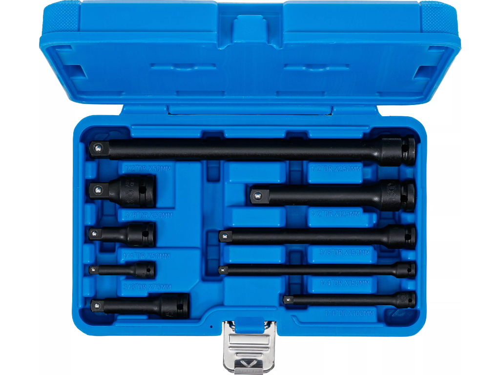 Sada 9 ks kovaných prodlužovacích nástavců se čtyčhranem 1/4", 3/8", 1/2".