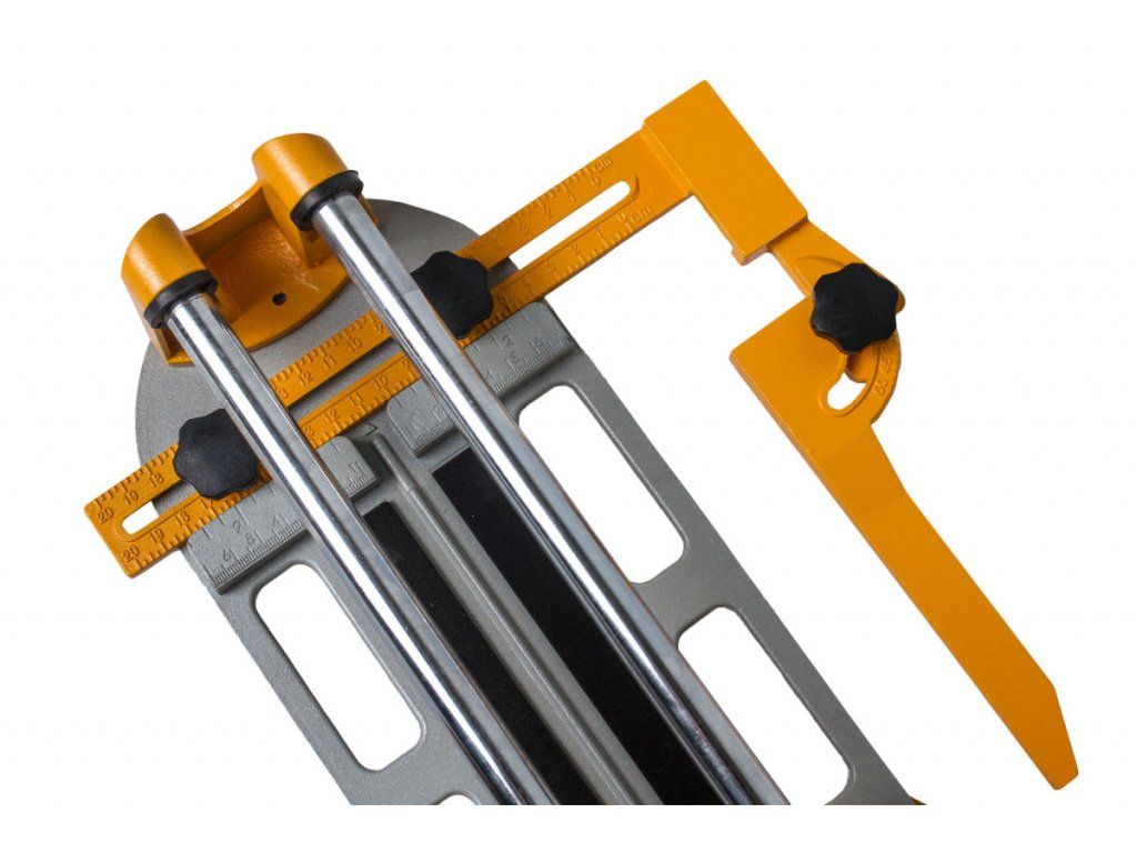 Dosedací plocha je ošetřena molitanem, který zabraňuje posunu dlaždice při řezání a zabraňuje tak možnému poškrabání, nebo nepřesnému provedení řezu. Práci Vám usnadní i měřítko, které je v sadě.