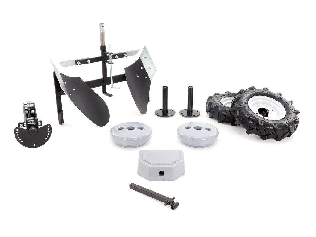 - Kompletní KIT pro orbu (šípová kola 400x8 včetně nábojů 230mm, KIT závaží - kolové i přední protizávaží, oboustranný pluh, adaptéry)