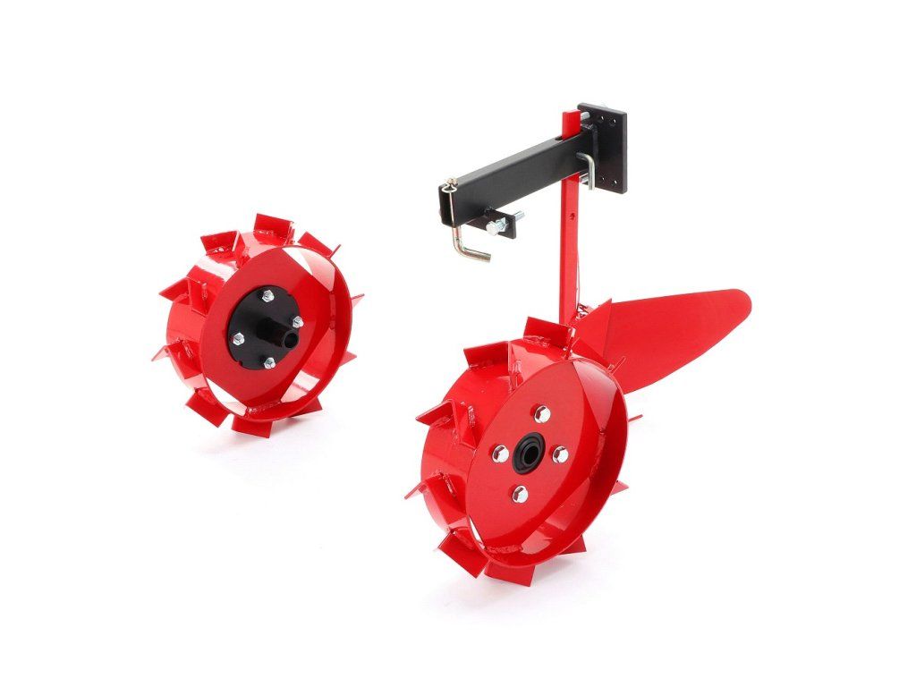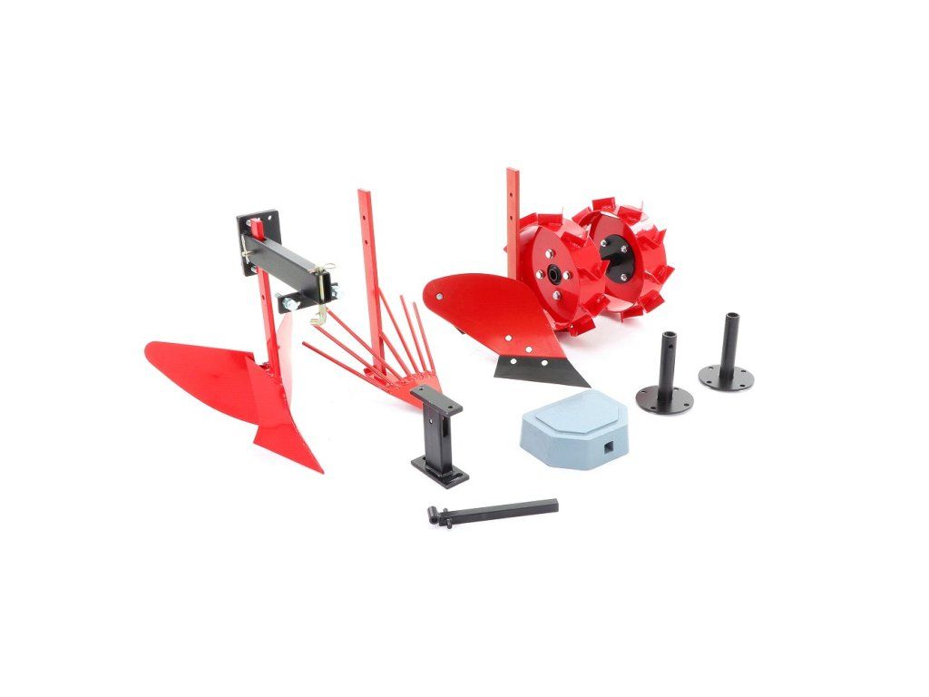 - Kompletní velký KIT (Kovová kola, jednostranný pluh, vyorávač brambor, hrobkovač, závaží a adaptery)