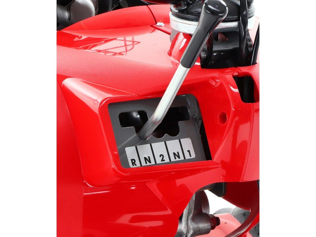 - Snadná jízda díky celokovové profi převodové skříni sestavající se ze 2 převodových stupňů vpřed a jednoho zpětného chodu