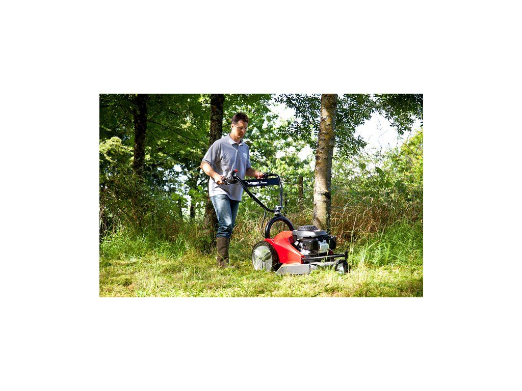 Profesionální robustní a velice obratný pojezdový křovinořez na sečení a mulčovaní přerostle trávy až do výše 50 cm s mimořádně velkými zadními koly s funkcí diferenciálu. Centrální nastavení výšky a startér je umístěné na řidítkách obsluhy.