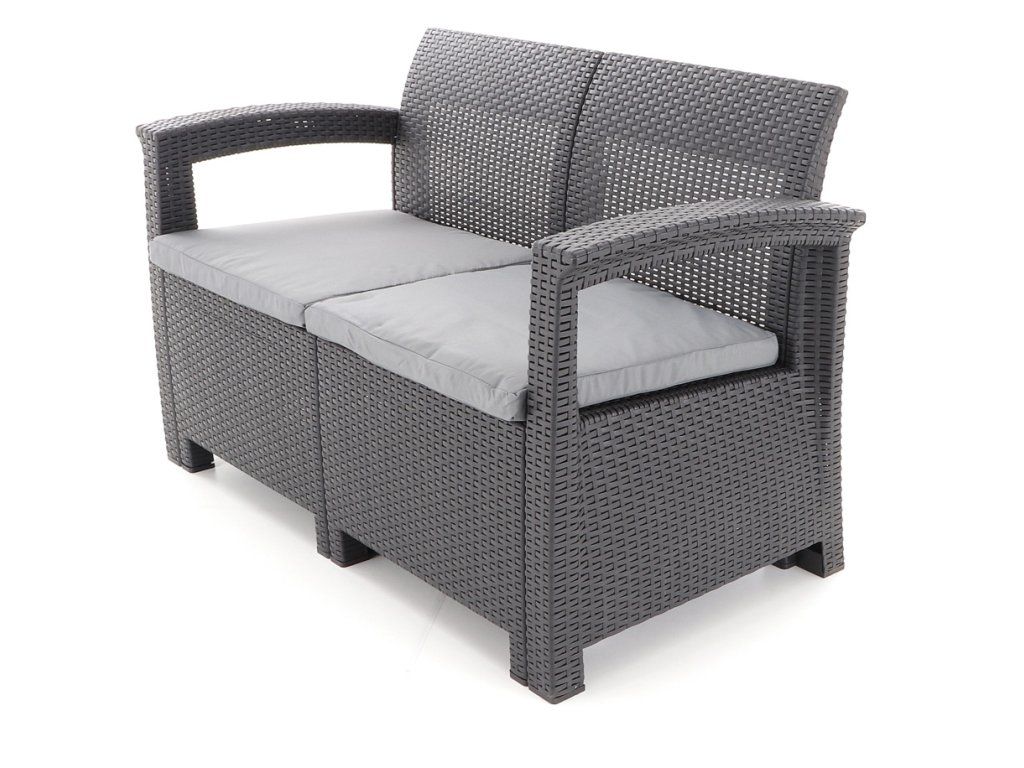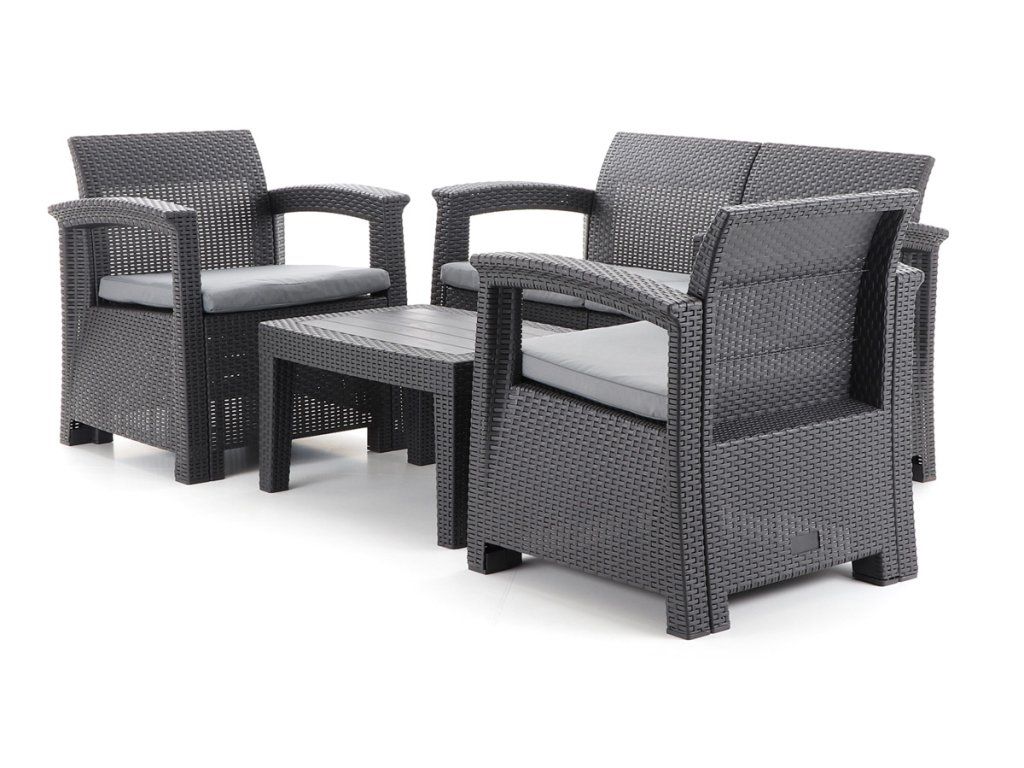 Nábytek má originální povrchovou strukturu napodobující přírodní ratan. Ideální pro pohodlné venkovní posezení na Vaší zahradě či terase.