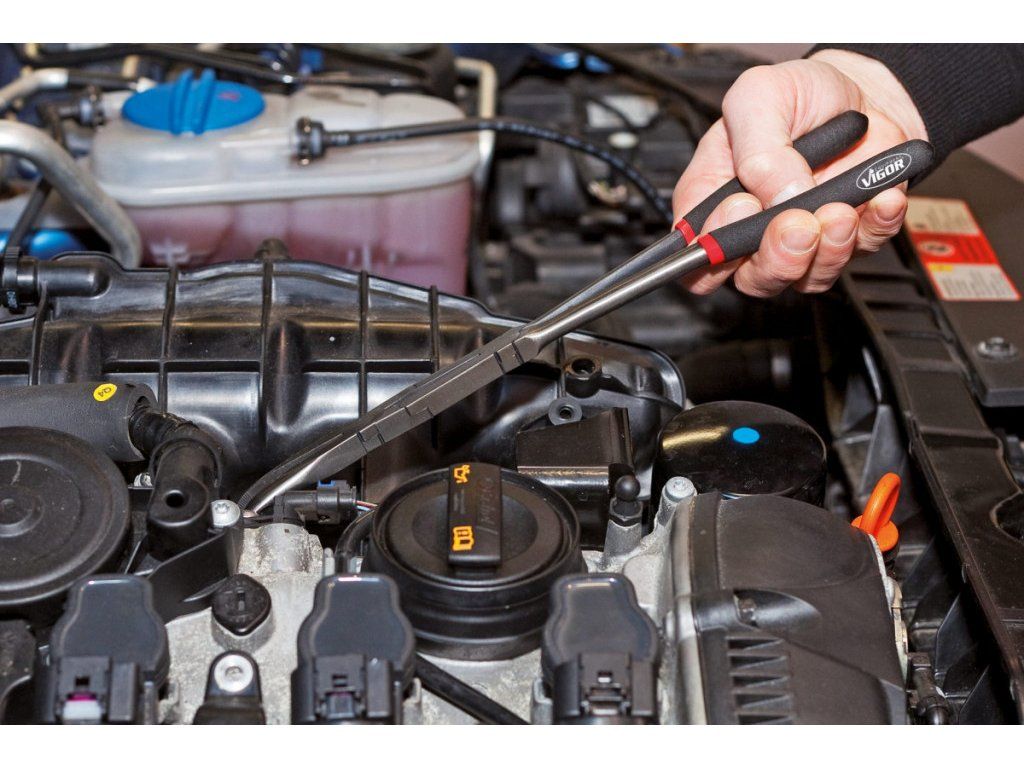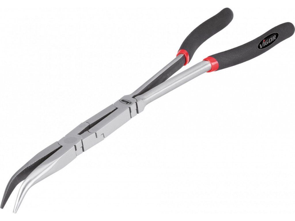Prodloužené kleště s půlkulatými zahnutými čelistmi (45°) a se zdvojeným kloubem jsou vyrobeny ze speciální oceli. Jsou extrémně úzké, mají délku 335 mm a ergonomické rukojeti, což umožňuje vysoký přenos síly na čelisti. Používají se zejména v obtížně přístupných místech.