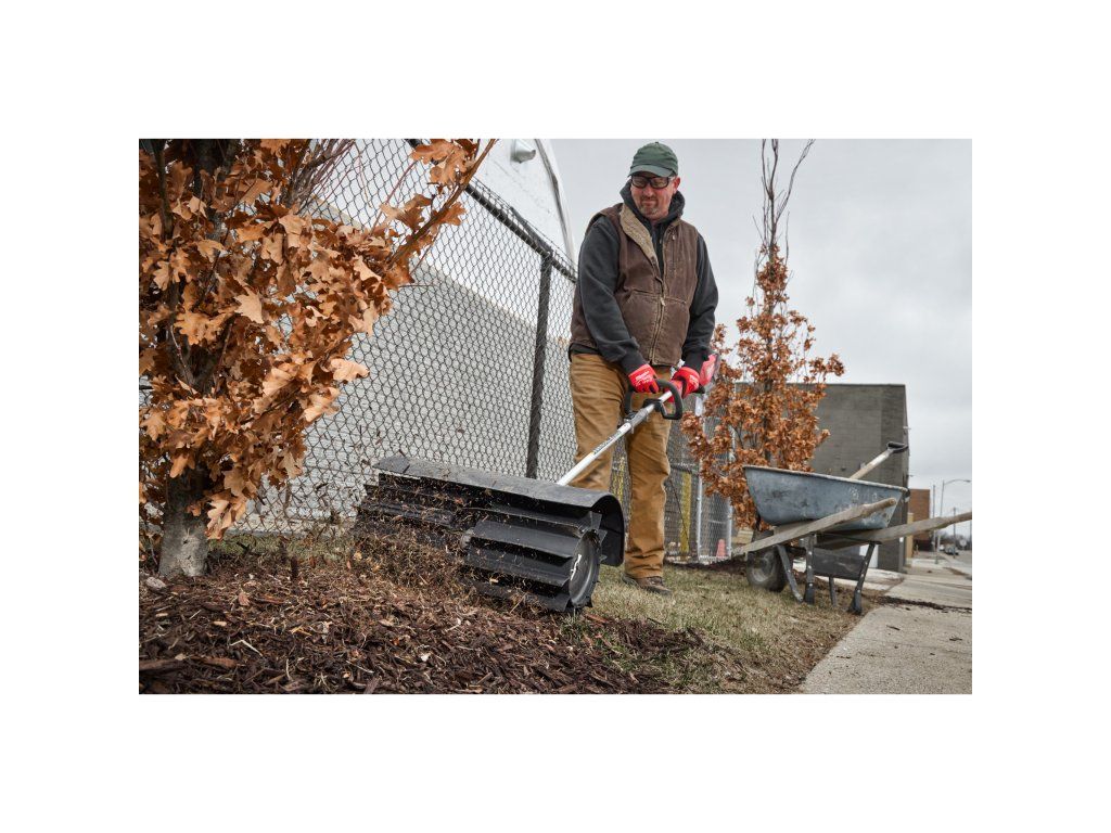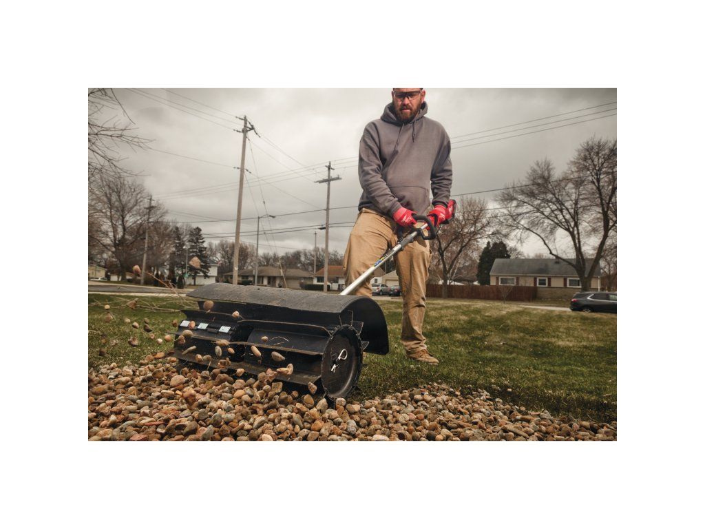 - Odstraňování kamenů, listí, hlíny, mulče a jiných nečistot z travnatých ploch a tvrdých povrchů, jako jsou chodníky, cesty, příjezdové cesty nebo terasy