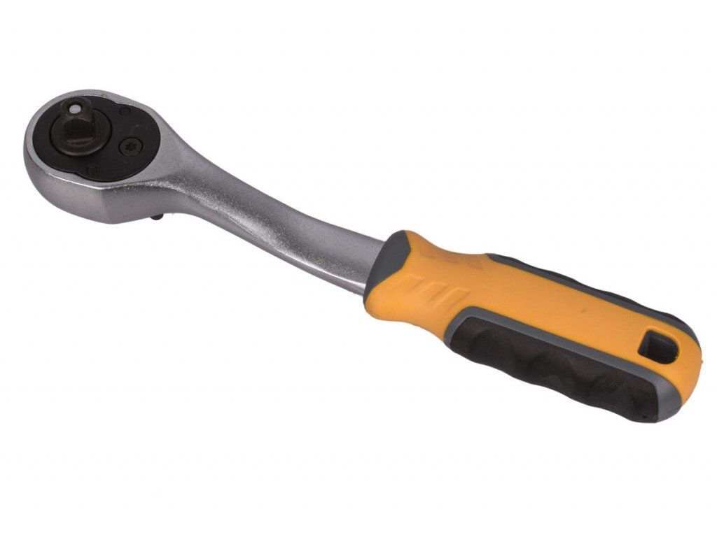 Ráčnový mechanismus se 72 zuby umožňuje plynulý chod a přesné nastavení směru otáčení pomocí přepínací páčky.