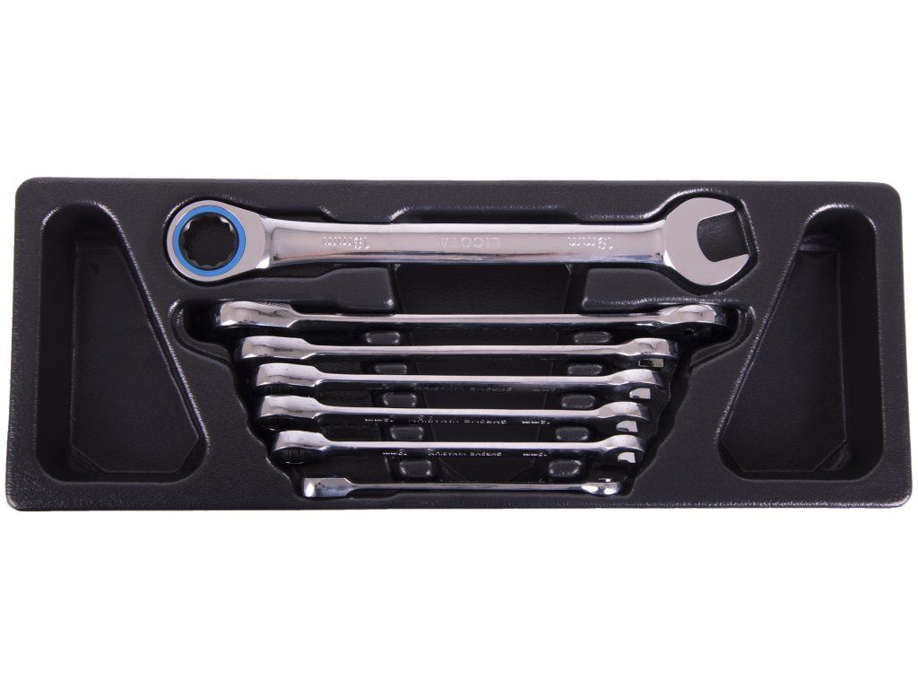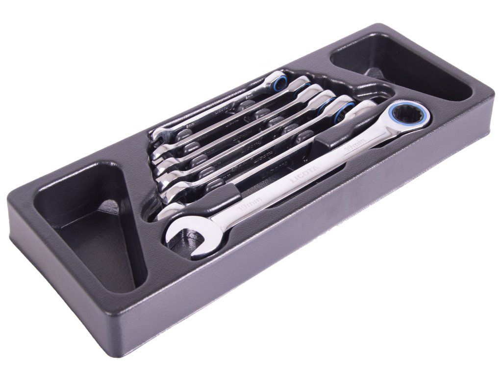 Sada 7 ks profesionálních ráčnových očkoplochých klíčů ve výplni pro nejnáročnější použití.