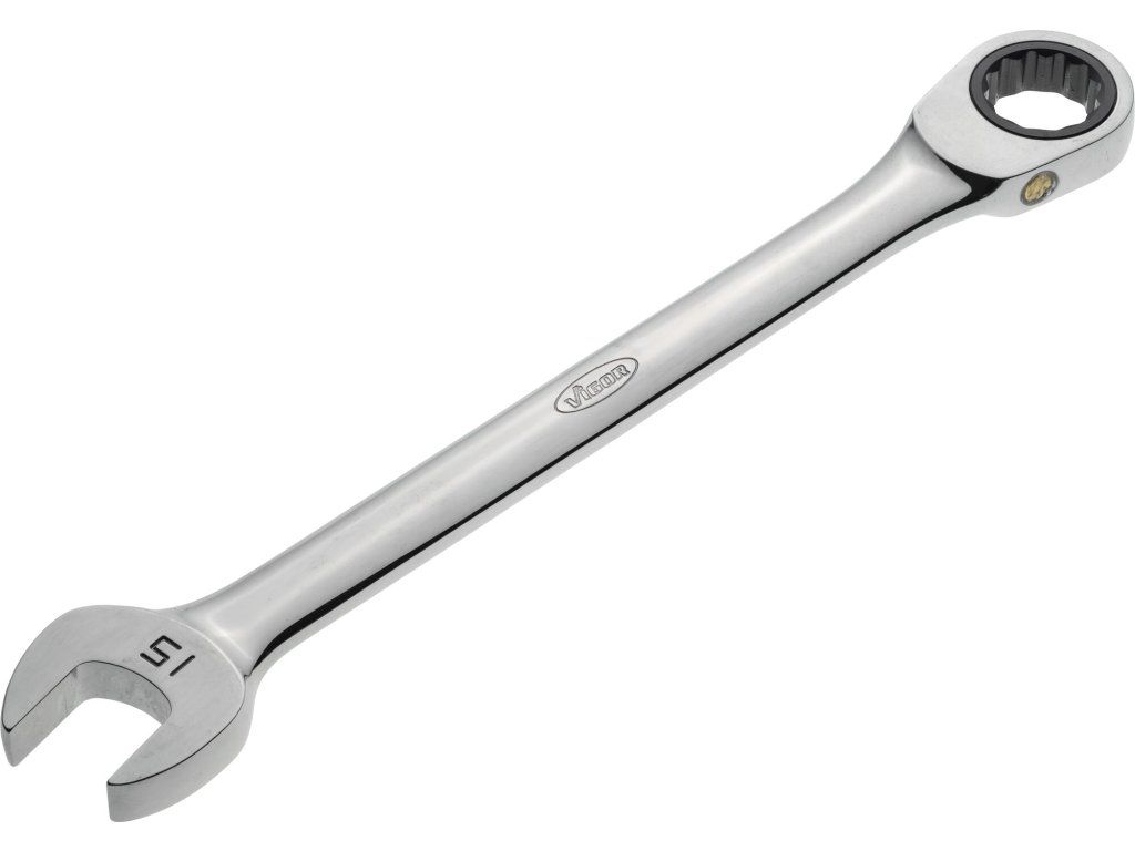 Ráčnový očkoplochý klíč, SW 15 mm, dlouhé provedení VIGOR V1026