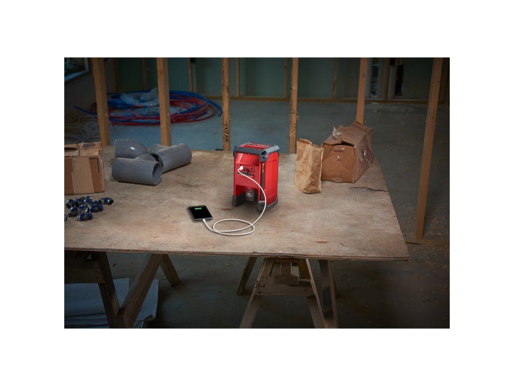 - Zabudovaná funkce nabíječky umožňuje rychlé a pohodlné nabíjení jakéhokoli akumulátoru M12™ nebo elektronického zařízení přes výstupní USB port