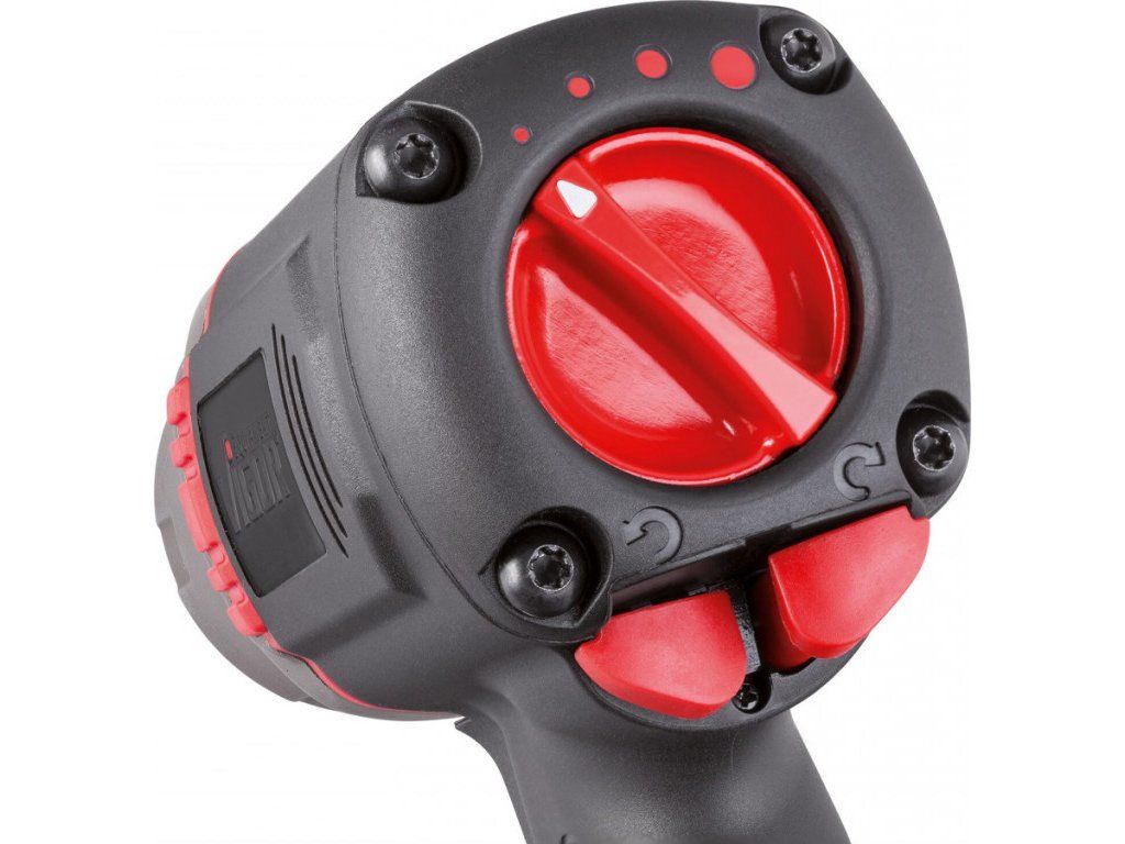 Mezi své přednosti rázový utahovák řadí vícestupňový pravý i levý chod s přepínáním jednou rukou. Maximální povolovací moment je 1890 Nm.
