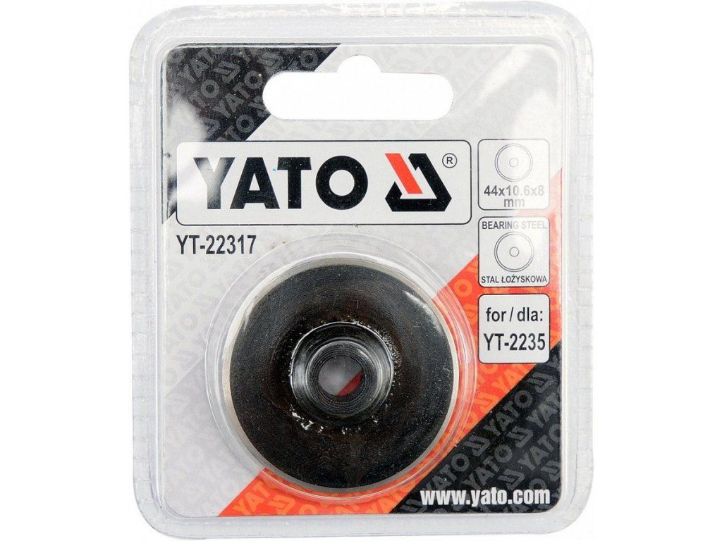 Náhradní řezné kolečko na trubky pro řezák YT-2235 Určeno pro řezání měděných trubek Vyrobeno z ocelového ložiska Rozměry 44 x 10.6 x 8mm Balení obsahuje 1ksDoplňkové parametry