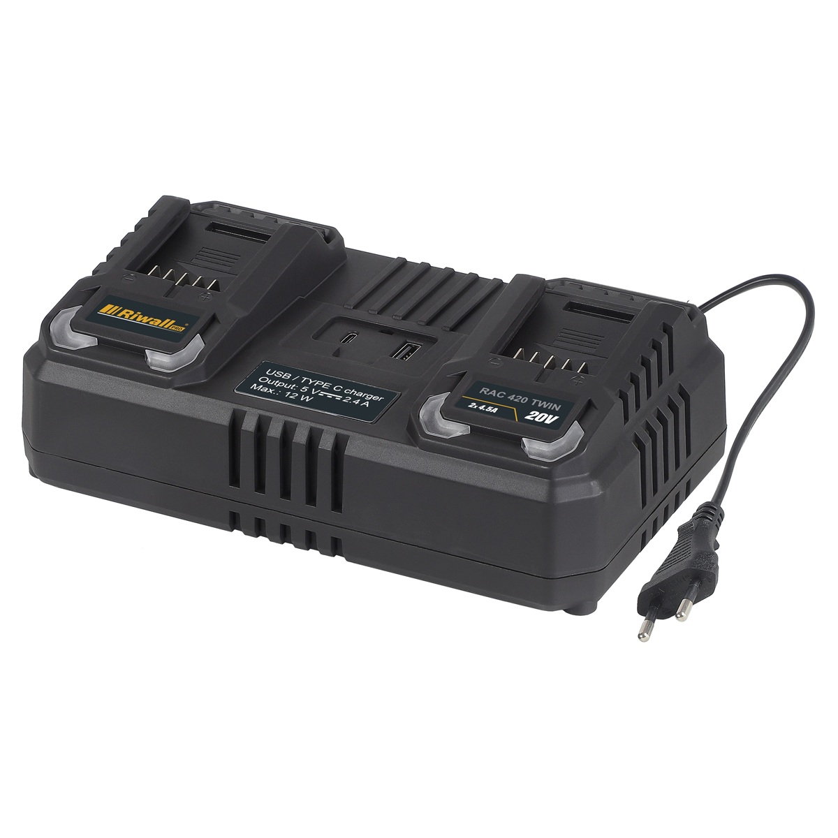 Parametry produktu Riwall PRO RAC 420 TWIN dvojitá rychlonabíječka pro aku baterie 20 V (4,5 A)