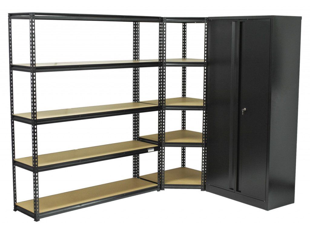 Rohový regálový systém PREMIUM s dílenskou skříní, 3 díly - AH1008