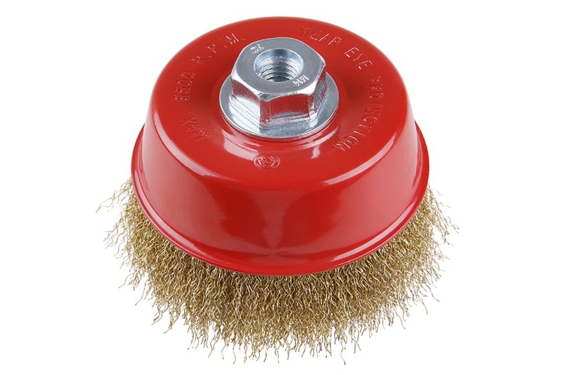 Rotační kartáč - hrnkový, kartáče FESTA zaručují kvalitní použité materiály i zpracování, vlnitý drát - pomosazený 0,3mm, průměr 125mm, uchycení M14*2, počet drátů 1350, délka drátů 23mm, maximální otáčky za min. 12500, použití : pro odstranění rzi, barvy, leštění. Instruktážní video
