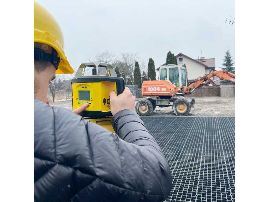 Laserová rovina generovaná laserem je referenční základna, jejímž prostřednictvím určíme výškové souřadnice, vše s vysokou, milimetrovou přesností. Tato rovina může být nakloněna v jednom nebo ve dvou směrech. Sklony se nastavují ručně (ručně). Na hlavě laseru je zaměřovač, aby se vešel do osy pádu. Umístěním laseru nad jeden bod a jeho namířením na druhý získáme přímku/osu, podél které bude rovina laseru nakloněna. Správné umístění laseru usnadňuje funkce laserové olovnice, která generuje laserový bod směrem dolů a zajišťuje správné umístění hladiny nad požadovaným bodem. Nemusíme převádět výšky, sčítat nebo odečítat – stačí naklonit roviny v souladu s konstrukčními pokyny a začít měřit. Kdekoli na stavbě (v dosahu laseru) - laserový paprsek nám ukáže správné souřadnice. Hladina má funkci alarmu nadmořské výšky. To je velmi důležité v případě nestabilního povrchu, na kterém je laser umístěn. Sesedání půdy může způsobit nežádoucí snížení referenční čáry, takže zařízení lze používat i v nejtěžších polních podmínkách. Umístěním laserové vodováhy na klikový stativ se stupnicí na výložníku lze laserovou rovinu snadno a rychle přizpůsobit požadavkům (zavedení výškových změn - offsetů). Laser stačí na stavbě jednou nastavit a následné výšky základny vozovky změnit na stativu. Za zmínku stojí, že stejně jako v případě klasických měření může být hladina referenčním podkladem pro řízení chodu strojů. Namontováním senzoru laserového stroje na stožár buldozeru nebo radlice grejdru nebo na rameno rypadla může operátor řídit práci v reálném čase na základě údajů ze senzoru. Jednoduché zprávy jako „zdvihnout lopatu“ nebo „čepel“, „spustit“ a „jste v požadované výšce“ pomáhají obsluze stroje provést práci tak, jak byla navržena. Jedná se o obrovské zjednodušení a zajišťuje zvýšení efektivity, ovlivňuje bezpečnost prací a nezávislost - obsluha si ražbu řídí sama, nepotřebuje podporu geodeta, není potřeba natahovat lana ani najíždět kůly.