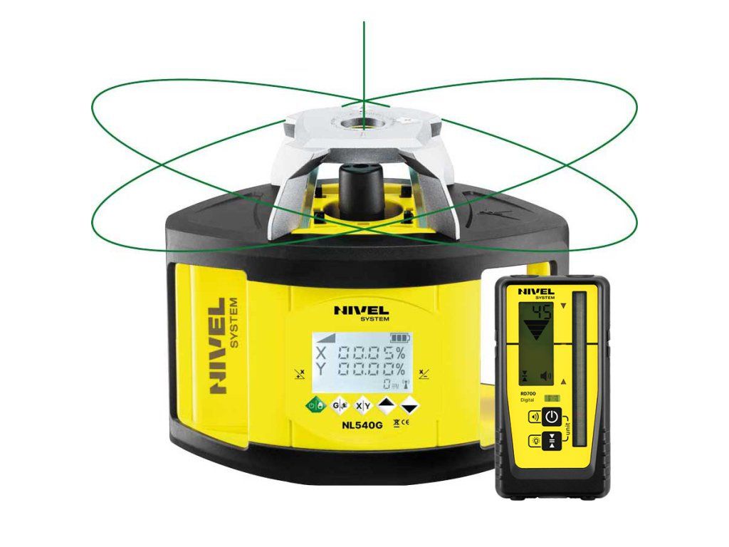 Nivel System NL540G je víceúčelový rotační laser poskytující všestranné obecné konstrukční aplikace. Práce lze provádět uvnitř i vně budovy pomocí senzoru. Vygenerovaná rovina nastavuje reference pro horizontální a vertikální práci, rovinu laseru lze naklánět (digitálně) v jednom nebo ve dvou směrech. Zařízení zajišťuje vysokou přesnost práce i na velké vzdálenosti a v obtížných polních podmínkách. Zařízení je uživatelsky přívětivé díky intuitivnímu rozhraní s LCD displejem. Jeho předností je trvanlivost a odolnost vůči povětrnostním podmínkám a účinné lithium-iontové baterie, které zajišťují několik desítek hodin nepřetržitého provozu v terénu. Zařízení je uživatelsky přívětivé díky intuitivnímu rozhraní a možnosti dálkového ovládání pomocí dálkového ovladače s LCD displejem.