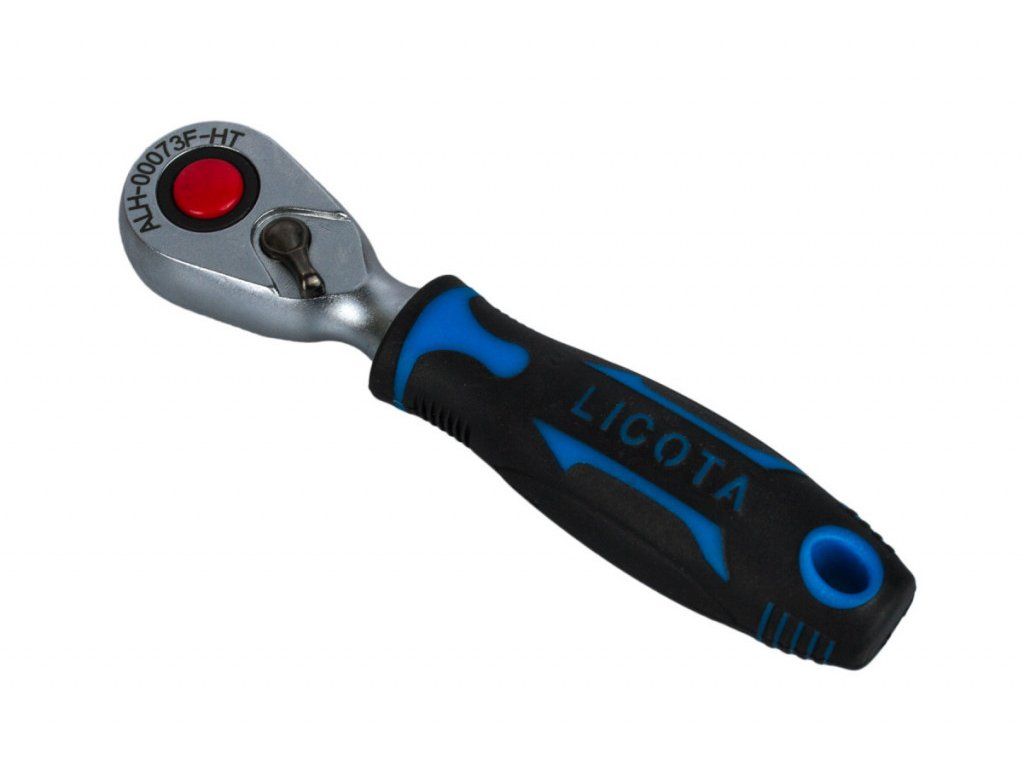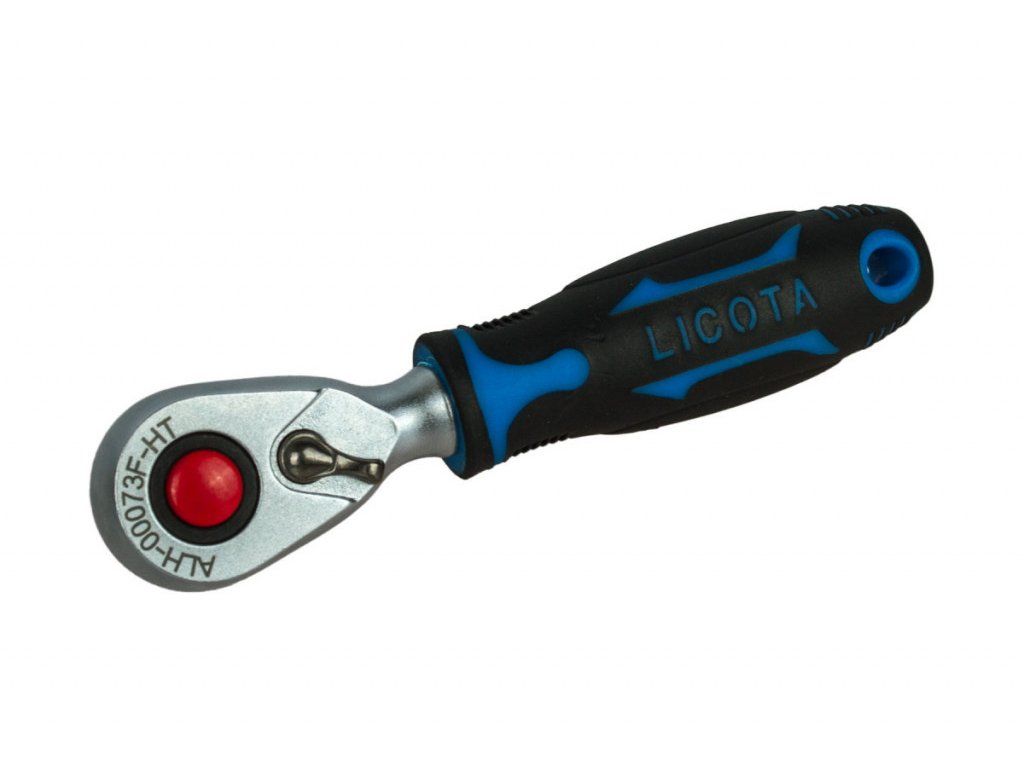 Kompaktní rovná ráčna značky Licota s hlavicí 3/8" a délkou 141 mm je navržena pro přesnou práci v úzkých a těžko dostupných místech.