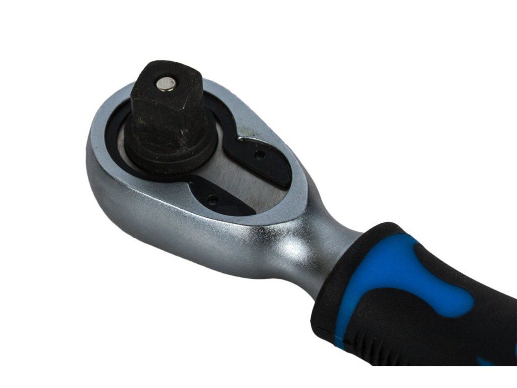 Ráčnový mechanismus se 48 zuby umožňuje plynulý chod a přesný přenos síly, což usnadňuje efektivní práci i v omezených prostorách.