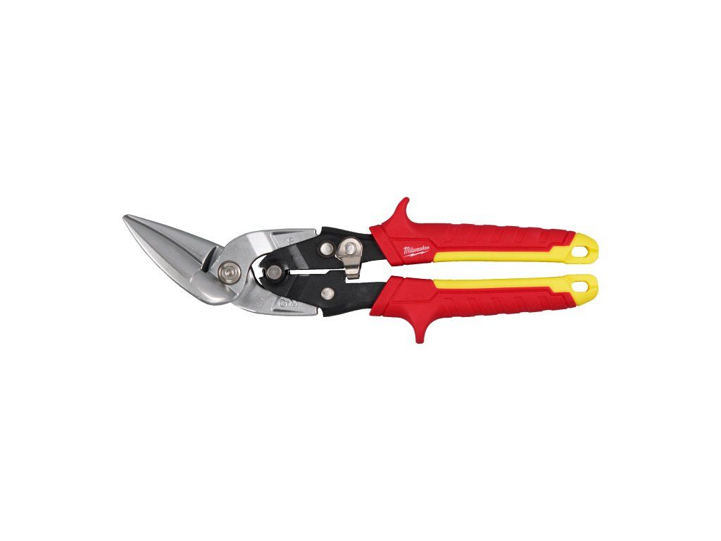 - Ofsetové nůžky: pro dlouhé souvislé rovné nebo zakřivené řezy. Díky posunu 45° zůstává ruka uživatele mimo stříhaný materiál.