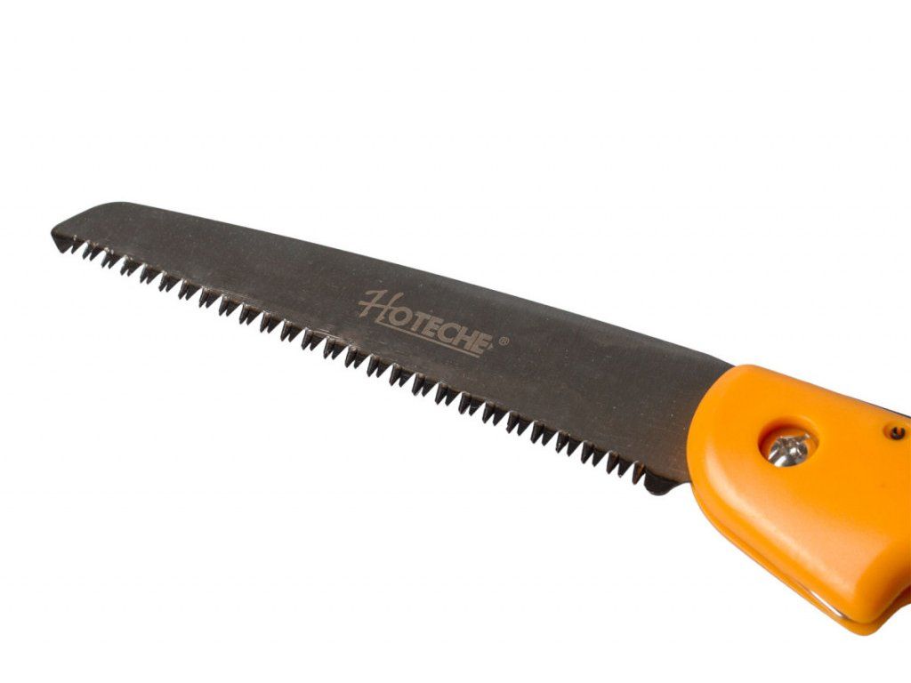 Ruční zaklápěcí pilka značky Hoteche, která je určena na zahrady, chaty a chalupy pro řezání větví a drobného dřeva.