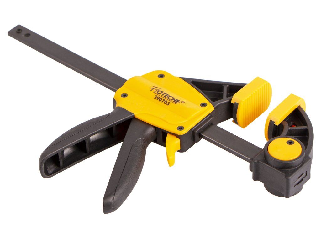 Rychloupínací truhlářská svěrka od značky Hoteche vhodná k upevnění, sevření různých materiálů.