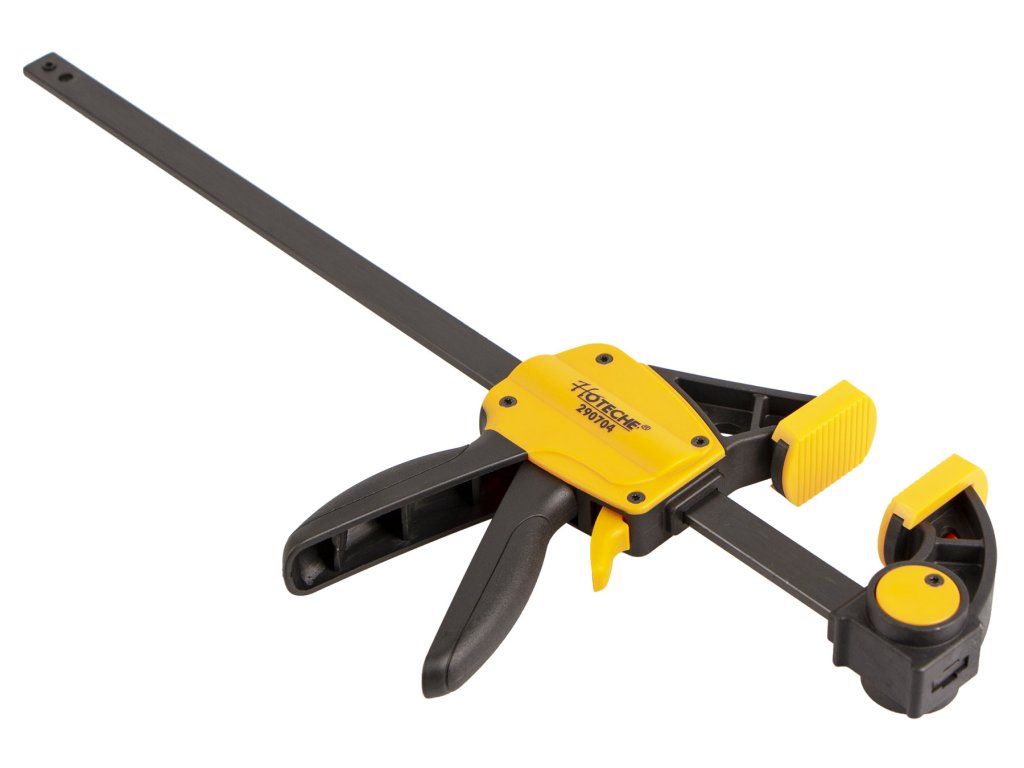 Rychloupínací truhlářská svěrka od značky Hoteche vhodná k upevnění, sevření různých materiálů.