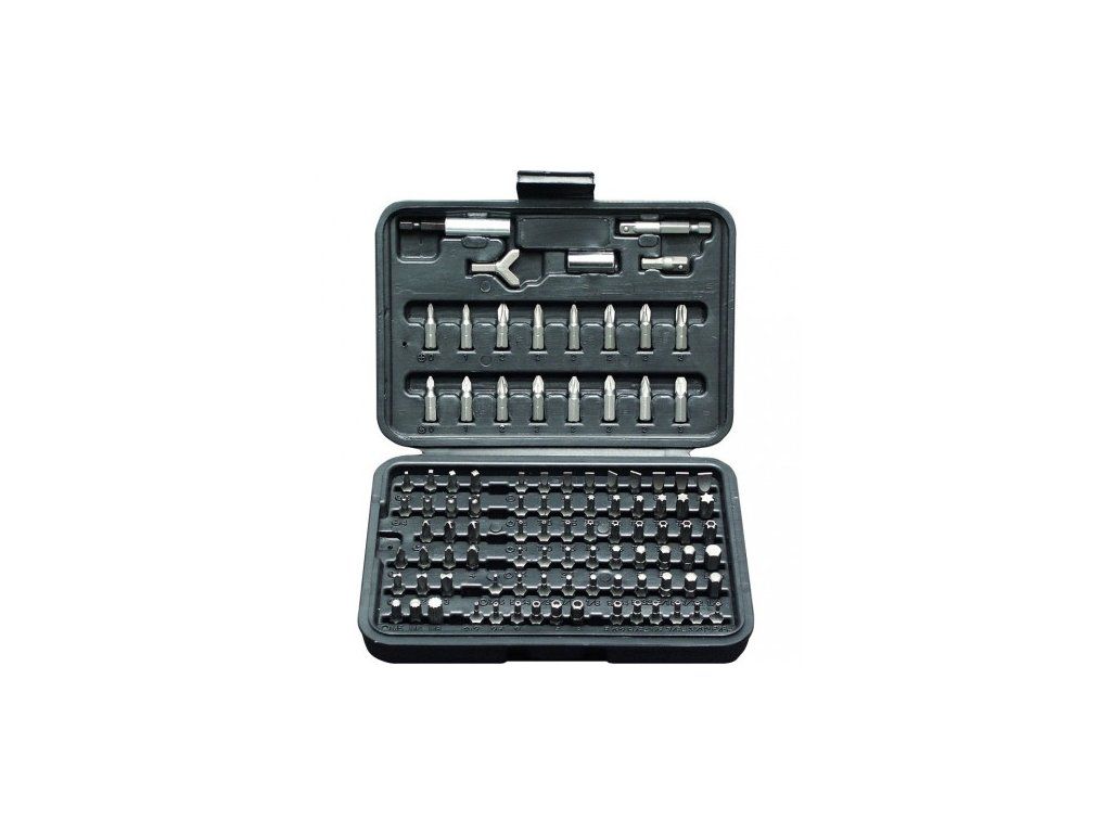 1/4" Sada SECURBIT, 100 dílů - 9x ploché (3 - 4 - 4,5 - 5 - 5,5 - 6 - 6,5 - 7 - 8) - 8x PH (0 - 1 - 3, 5x PH2) - 8x PZ (0 - 1 - 3, 5x PZ2) - 9x imbusové (1,5 - 2 - 2,5 - 3 - 4 - 5,5 - 6 - 8) - 10x imbusové (1/16" - 5/64" - 3/32" - 7/64" - 1/8" - 9/64" - 5/32" - 3/16" - 7/32" - 1/4") - 6x imbus s otvorem (2 - 2,5 - 3 - 4 - 5 - 6 mm) - 6x imbus s otvorem (5/64" - 3/32" - 7/64" - 1/8" - 9/64" - 5/32") - 9x TX (8 - 10 - 15 - 20 - 25 - 27- 30 - 35 - 40) - 9x TX s otvorem (8 - 10 - 15 - 20 - 25 - 27 - 30 - 35 - 40) - 4x robertson (0 - 1 - 2 - 3) - 3x torg (6 - 8 - 10 mm) - 4x Tri-wing (1 - 2 - 3 - 4) - 4x spanner ( 4 - 6 - 8 - 10 mm) - 3x clutch (1 - 2 - 3) - 3x XZN tisícihran (M5 - 6 - 8) - 1/4" bit na háky - magnetický držák bitů - adaptér na bity 1/4" x 1/4" - adaptér pro 4-hran 25 + 50 mmDoplňkové parametry