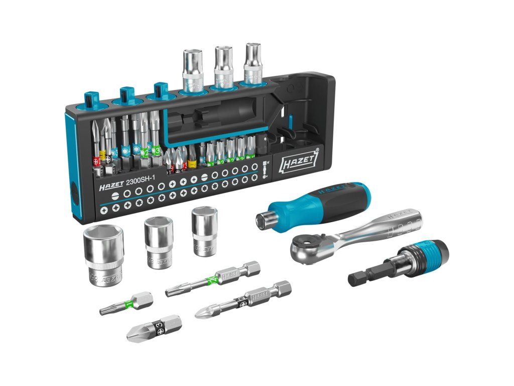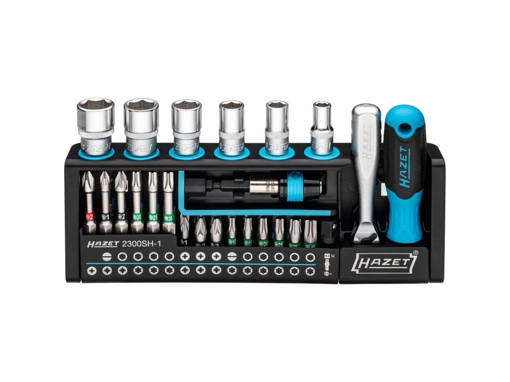Profesionální sada 39 ks bitů, nástrčných klíčů s ráčnou a šroubovákem od německé značky Hazet.