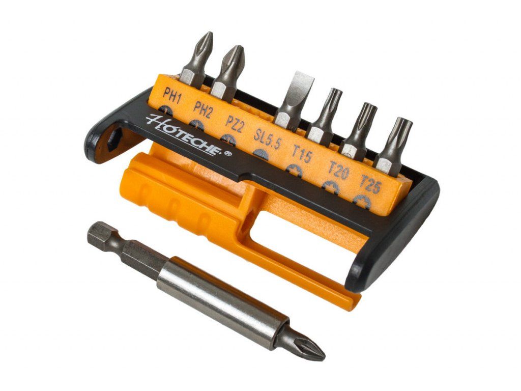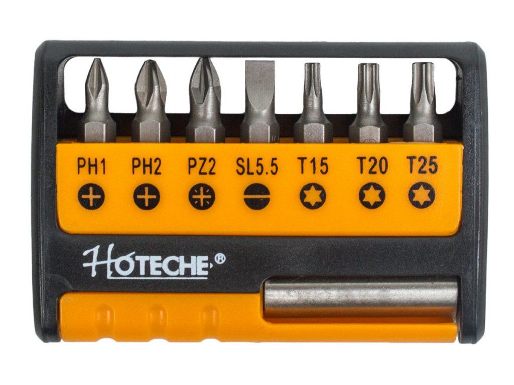 Sada bitů nesmí chybět u žádné AKU vrtačky a šroubováku nebo šroubováku na bity. Sada je přehledně uložena v plastovém držáku, který lze přenášet i v kapse.