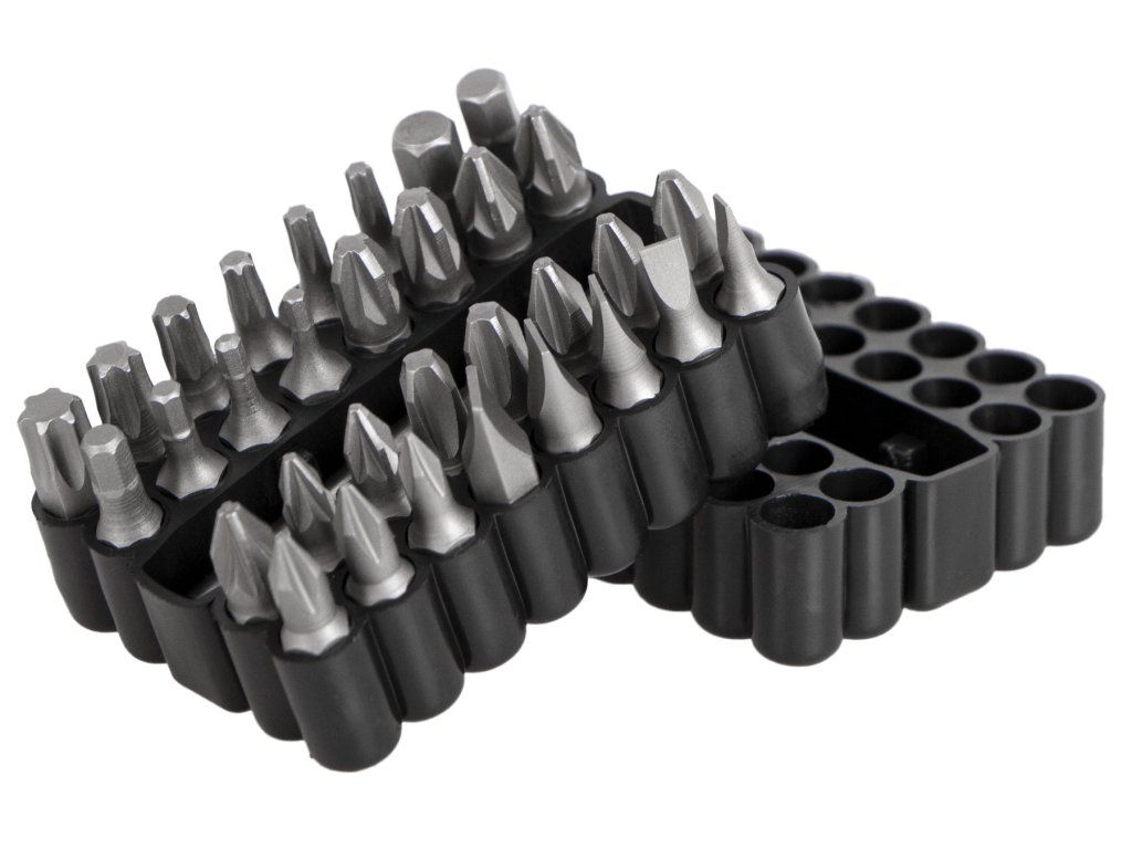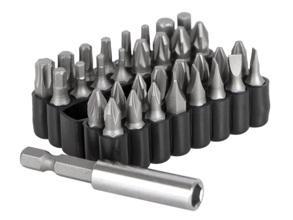 Sada 33 ks bitů s adaptérem nesmí chybět u žádné AKU vrtačky a šroubováku nebo šroubováku na bity.