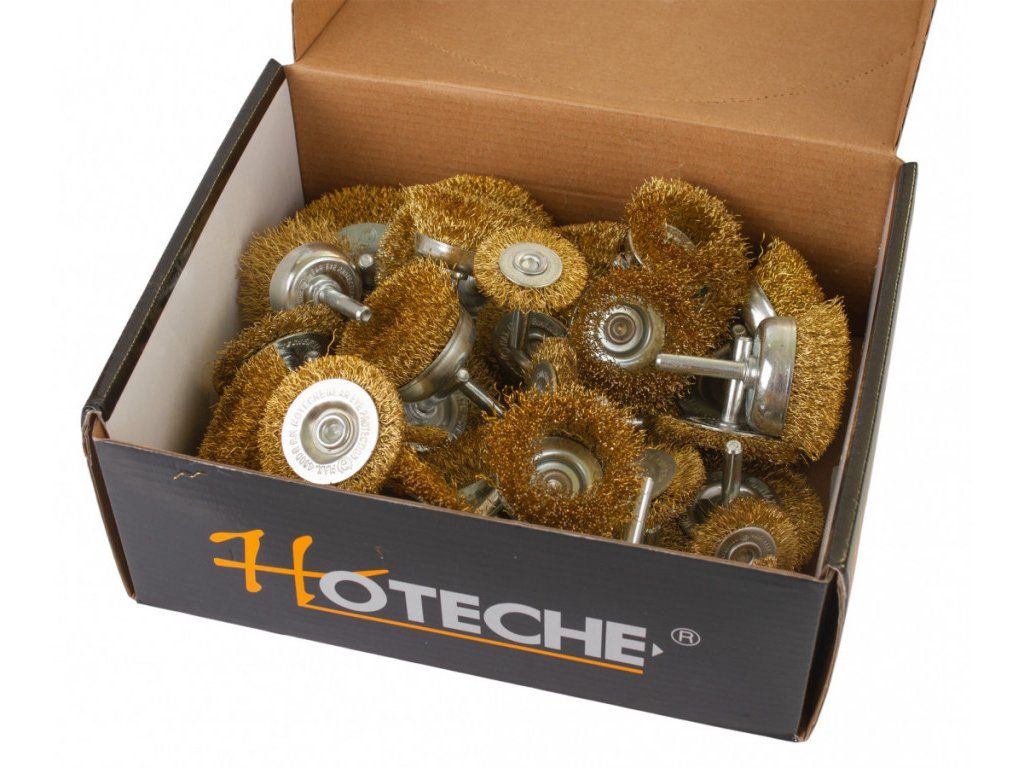 Sada drátěných kartáčů s nástavcem do vrtačky vyráběná značkou Hoteche.