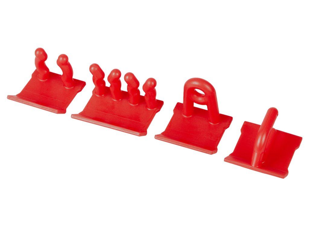 Sada obsahuje celkem 8 dílů, které poskytnou maximální flexibilitu a organizaci v dílně, garáži nebo skladu. Každý háček je vyroben z vysoce odolného plastu, který zajišťuje dlouhou životnost a pevnost.