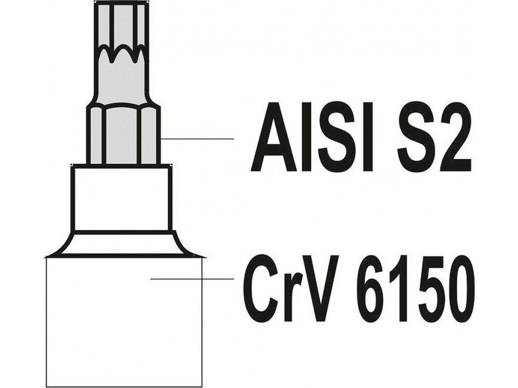 Adaptéry bitů jsou zhotoveny z odolného materiálu CrV 6150. Jednotlivé bity pak z vysoce kvalitního materiálu AISI S2 s tvrdostí HRC 58-62 a finišovací úpravou poniklování.