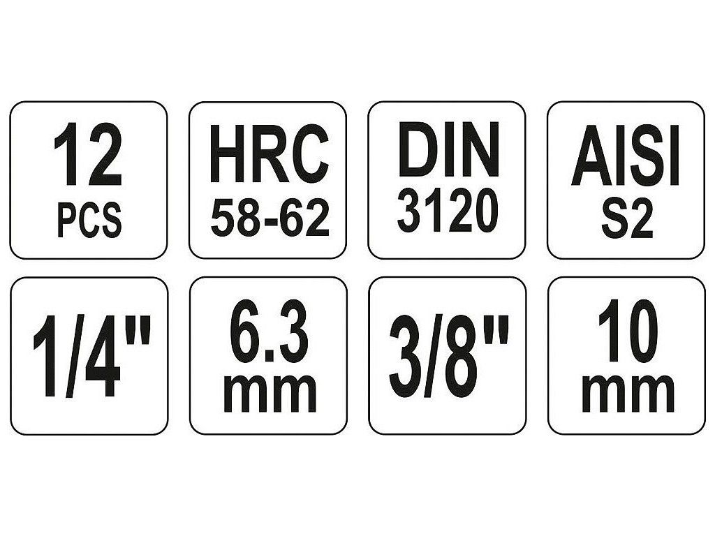 Sada hlavic s bity TORX s otvorem 1/4" a 3/8" 12 ks - YT-04332